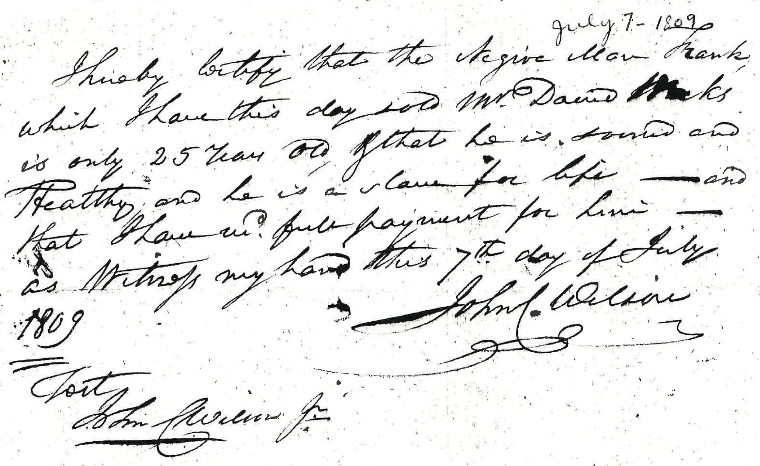 Bill of sale for Frank, an enslaved man sold to David Weeks. David Weeks and Family Papers, Louisiana and Lower Mississippi Valley Collections, LSU Libraries, Baton Rouge, La.